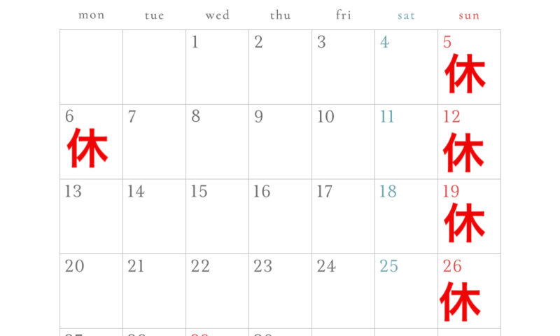 ~·~·~4月のお休み~·~·~
